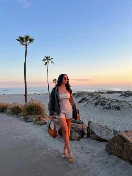 - Hidden back zipper closure